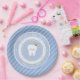 Personalised First Tooth party decorations. Baby blue paper plate with cute tooth, editable name and date. Visit the shop to see all the First Tooth collection.