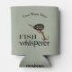 Funny fishing can cooler for all fishermen and fisherwomen. Fish Whisperer in text with a full colour fishing lure near the top and your name in curve text at the top. Printed on Front back and bottom.