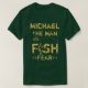Personalised Fishing T-Shirt Relace the name Micheal with the name you require, to make this a totally unique gift ideal for any fishernams birthday or fathers day etc. The T Shirt reads YOURNAME THE MAN FISH FEAR. Featuring a fisherman in a boat catching a fish that appears in the word fish. Great design.