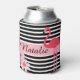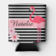 A beautiful can cooler with modern stripes, flowers, a Flamingo and easy personalisation.