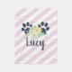 A fun, whimsical fleece blanket that can be personalised just for your furry friend. This blanket features two navy blue paw prints and a fun bouquet of flowers placed upon an adorable pink striped background.