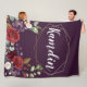 Personalised Fleece Throw Plum Purple Roses Gold G