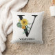 Personalised Floral Alphabet V Monogram Throw Pillow