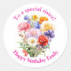 Celebrate your sister's birthday in style with this beautiful floral birthday sticker, perfect for adding a personal touch to gifts, cards, party favours, or envelopes. Featuring a vibrant watercolor bouquet and heartfelt message, this round sticker reads: