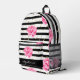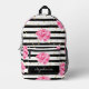 Personalised Floral Black Stripe and Gold Confetti Printed Backpack