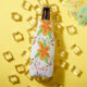 Stylish orange flower art bottle jacket sleeve, personalise the name for your name, or a custom and personal friend gift for any occasion. The text is also removable. The white background can be customised to any colour.