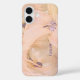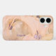 A unique light orange flower cover for your iPhone 16. Personalise it with your name, written in purple.