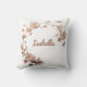Add a touch of personalised elegance to your home decor with this exquisite throw pillow design. Featuring a delicate semi-circular wreath of blush pink and cream flowers, intertwined with soft green foliage, it beautifully frames any name in an elegant cursive script. Perfect for adding a bespoke element to any room or as a thoughtful gift for someone special. Customise with any name to make it uniquely yours!