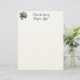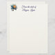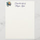 Elegant personalised letterhead featuring a delicate blue and orange watercolor flower in the top left corner. The words “From the desk of Rayna Lynn” appear in a graceful navy cursive font, centred at the top. The clean white background gives it a sophisticated and professional look, perfect for personal notes or business correspondence.