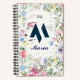 Brighten your writing routine with this personalised floral spiral notebook featuring a bold initial "M" and your custom name on a vibrant watercolor floral background.
