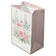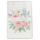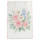 Add a charming, personalised touch to your gifts with this elegant floral gift bag. Featuring soft watercolor illustrations of blush pink roses, white blooms, and blue wildflowers, this custom bag includes space for a name or message, making it perfect for birthdays, weddings, baby showers or thank-you gifts. A lovely detail that elevates any present with a gentle, botanical flair.