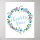 Personalised Floral wreath name poster print