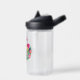 Pretty watercolor ai art purple and pink coloured flowers in a heart shape personalised water bottle.