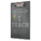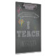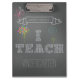 Chalkboard look clipboard with chalk style text that reads I Teach, a blue doodle flower, multicolors doodle flower, pink and white butterfly, and a chalkboard banner that you can easily add your name to! You can also add the class or subject that you teach to further customise it!