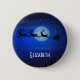 Persoinalize with your own name or other custom text. A festive christmas illustration. Santa in his sleigh and his reindeer flying across the dark blue night sky. A glowing moon illuminates the sky and one can see twinkling stars all around.