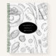 Personalised family recipe book featuring a hand sketched food pattern customised with your name on the cover. Visit our shop to view our large selection of unique recipe notebooks.