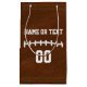 Personalised Football Gift Bags with Name and Jersey Number or Monogram or Your Text or Delete. 4 Football Gift Bags Sizes. Shown in the Small Football Gift Bag. Football Stitching on a texture look close up of a football. Cool Football Favour Bags for your football goodies. CALL Designer Linda: 239-949-9090 for Design and Product Changes.