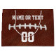 Personalised Football Gift Bags, Your Name, Number or Monogram or Your Text or Delete. CALL Designer Linda: 239-949-9090 to create more football birthday party ideas, decorations and supplies. You, or Designer Linda, can move, resize or change any of the football background or football stitches images or delete any part of the text or design.