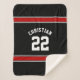 Personalised red and black Football Jersey Novelty Sport Themed Sherpa throw blanket from Ricaso - add your own text / name and number to this fun blanket