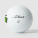 Personalised lucky golf balls with your name at the top and a four leaf clover with the text Lucky Balls.