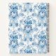 Elegant, romantic and ornate vintage French Rococo style seamless floral featuring blue roses and scrolls on white background. Optional customisable blank elements for your name or monogram.