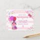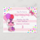 Personalised Pink Frog Themed Girl's Birthday Party invitations. An affordable but cute way to invite people to your birthday party! Pink and purple sprinkles with a cute whimsical hand drawn frog holding balloons.