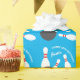 Add your own custom text for boy or girl. Blue or custom background colour. Bowling pins and ball strike design.