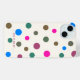 The design is a colourful one presenting different sized circular confetti in shocking, deep pink, deep sky blue, raspberry rose, hazel green, faded jade, greyish pastel brown, and rose white colours - along with a customisable typography field that currently reads "Joy in Colour" for name or other personalisation. Personalise this item or purchase as is. It is elegant and fun!