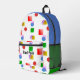 The artwork is a stunning display of vibrant and colourful geometric designs, featuring an array of squares and circles. It is complemented by a customisable typography field where you can add names or other personal touches. The colours in this artwork include yellow, red, green, blue, pink, and purple, creating a refreshing and lively composition. Make this bright piece of art uniquely yours by adding your own inspirational words or the recipient's name. This makes a fun school and everyday backpack.