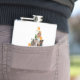 Well made flask, a little better than I had expected. Flask came in clear plastic box which gave it a nice presentation when I took it out of the zazzle packaging. Image is not printed on flask but on sticker. Don't know how this will hold up I haven't used it yet. This would make a Great gift! I plan to purchase more for friends! Cheers. I thought a little brighter than computer. Very crisp, writing wasn't