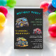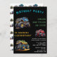 Get ready to rev up the excitement with these children's monster truck birthday invitations! Featuring three colourful monster trucks on a vibrant black background, these invitations are sure to make the colours pop. With funky text and fully customisable options, you can personalise them to suit your unique needs. Let the fun begin!