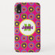 This hot pink cell case cover has a colourful pattern of circles, circles, and more circles in bright yellow, orange, green, purple, blue, and navy. Customise the white and yellow circle with your name, initials, monogram, or other wording. Make the circle and name as big or little as you like, or remove it completely.