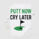 Make every shot—and every sweat wipe—a statement with this bold and witty “Putt Now Cry Later” golf towel. Designed for the golfer who knows that putting is equal parts precision and pain, this towel adds a splash of humour to your gear while delivering serious performance on the course.