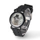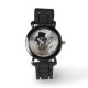 I had two concerns when ordering this watch - one that the watchband didn't look that glittery and two that the dial would be too large. Neither was a problem at all. The watch band is nice and glittery for a touch of bling. As to the size, I have small bones so I tend to like smaller looking accessories and I am quite comfortable with this. Neither too large or too small. The outside edge to edge on the dial is 1 1/4" the inside image is 1 inch.