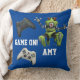 A Blue Game On Gamer Large Throw Pillow Designed With Two Controllers And Four Legged Robot You Can Customise