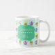 Multi-coloured watering cans and colourful plants in repeat pattern on cute personalised mug to make your own.