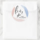 Personalised Gender Reveal He or She stickers with abstract pink and blue background and modern calligraphy. Visit the shop to see all the collection!