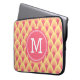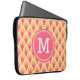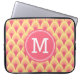 This stylish monogrammed laptop sleeve features a unique geometric pattern in shades of blush pink.