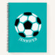 Personalised Geometric Soccer Ball Kids Sports Sports Journal. Many paper styles. Black and white geometric soccer ball on teal green background. Personalise with name underneath in curved font. www.SamAnnDesigns.com