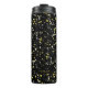 This thermal tumbler features a trendy yellow and grey terrazzo pattern on a black background. Personalise it with a name in the matching yellow font at the bottom. Customise the colours by clicking on the Customise further.