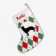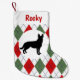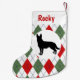 Personalised German Shepherd Red And Green Argyle Small Christmas Stocking