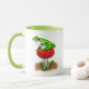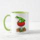 Cute hand drawn frog art. Green frog on a whimsical red mushroom.