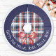 Navy Red Personalised Childrens Name or Any Custom Text Plaid Farmhouse Brushed Fleece Christmas Tree Skirt