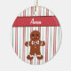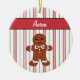 Peppermint stripes and a gingerbread man decorate this Christmas ornament! Customise this ornament by changing the name. Use this cute gingerbread ornament as a gift, Christmas tree decoration, decor, etc....The designs are from original art.