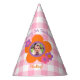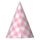 Personalise these cute party paper party hats with your photo and lettering. The pretty pink and white buffalo check background with pink, purple and orange retro style flowers will be a hit with your little one.