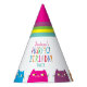 Kawaii, cute, colourful Purrfect Birthday party hat, with name of the girl and funny cat pattern.