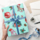 This Unicorn Christmas wrapping paper features a lovely watercolor illustration a couple of magical unicorns in Santa hats, as well as Christmas trees and other Holiday elements. You can also personalise it by adding your little girl's name onto the paper.