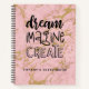 This personalised girly 8.5 x 11 sketchbook has black text on a pink marble background. The words, "DREAM,IMAGINE,CREATE" in a hand drawn font personalised with your name below. Customise the sketchbook with the name of your choice to make someone feel extra special. Makes a fun gift for birthdays or for Christmas. Comes in a variety of colours. Designed for you by Blackberry Boulevard.