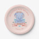 Personalised Girls Blue Elephant Coral Paper Plates are the finishing touch for your elephant themed baby shower. Paper plates have mother's name, baby shower, and the date. All on a textured coral background.