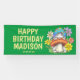 Personalised Girls Frogs Birthday Banner. This design has a cute frog flowers, and mushroom design. Great birthday decor for a Frog themed birthday party.